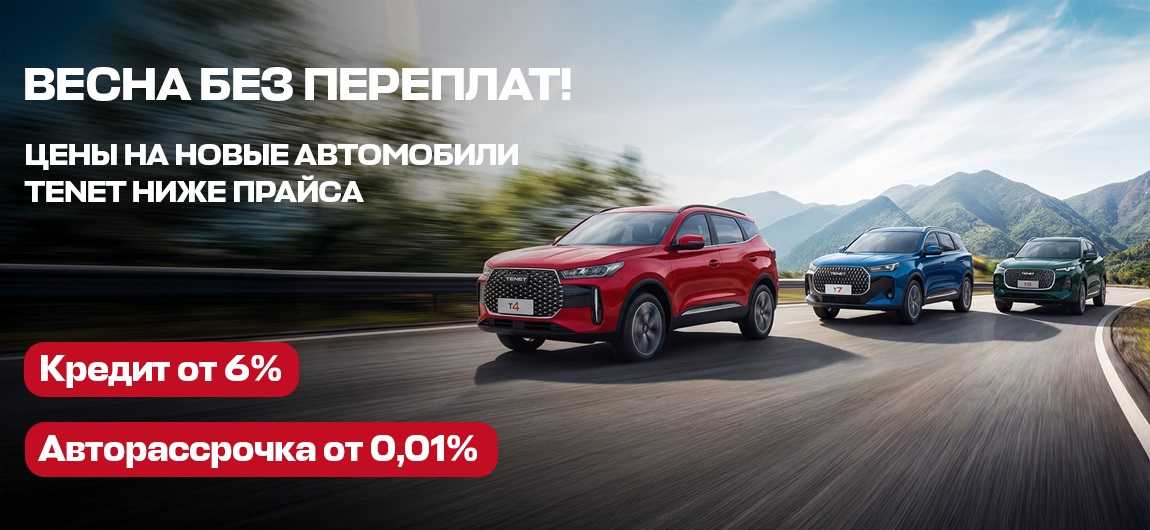 Только этой весной автомобили TENET из наличия по цене ниже прайса! Большой выбор, выдача одним днем, выгоды по трейд-ин. Выгодные условия при покупке в кредит от 6% или рассрочка под 0,01%.